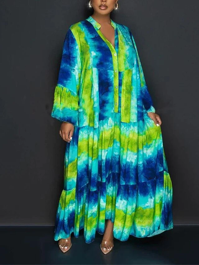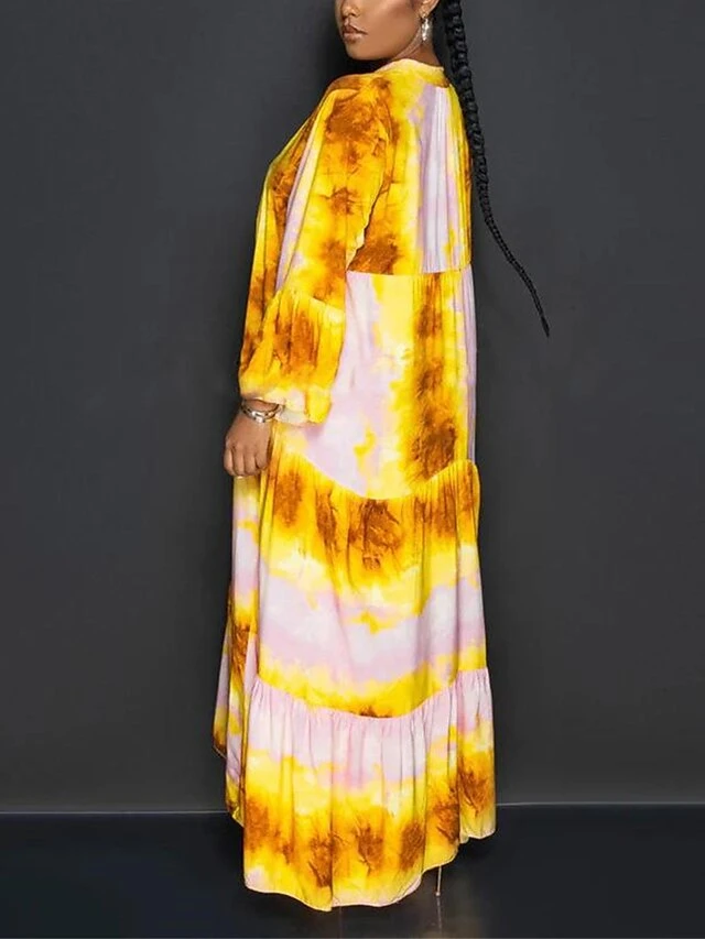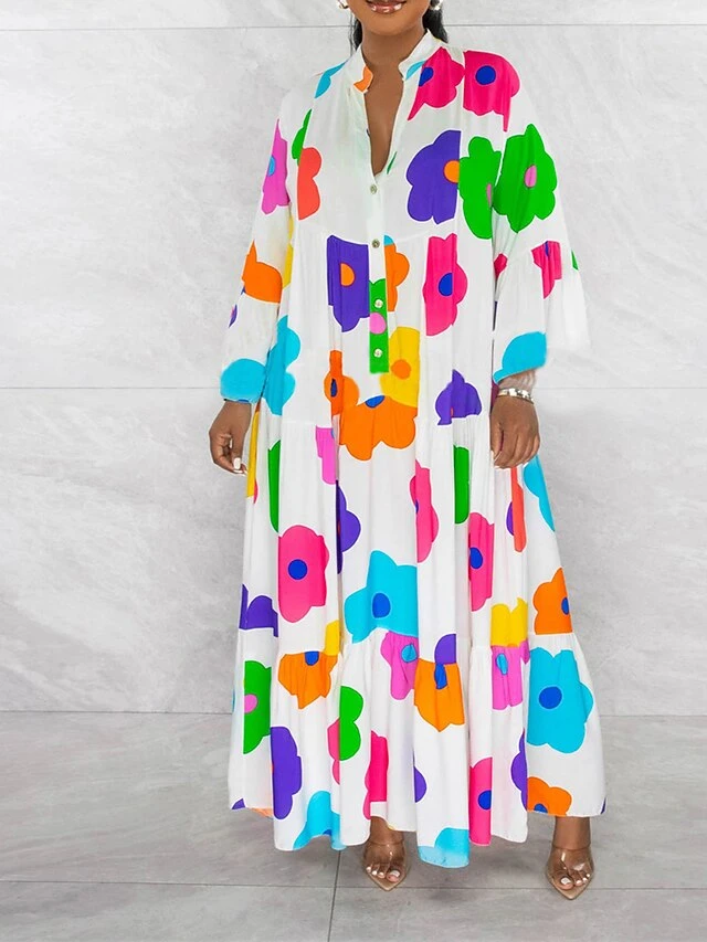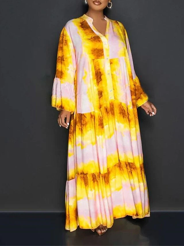 Women’s Shirt Dress Casual Dress Swing Dress Maxi Long Dress Outdoor Daily Vacation Polyester Fashion Modern Split Neck Ruffle Print Long Sleeve Summer Spring Fall 2023 Loose Fit White Tie Dye Flower