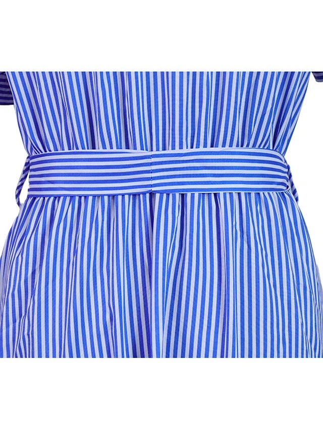 Women’s Shirt Dress Maxi Long Dress Daily Vacation Polyester Casual Shirt Collar Lace Up Button Short Sleeve Summer Spring 2022 Regular Fit Blue Green Striped S M L XL