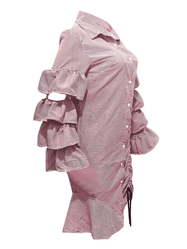 Women’s Shirt Dress Sheath Dress Midi Dress Winter Dress Daily Vacation Polyester Cotton Blend Fashion Casual Shirt Collar Lace Up Ruched Long Sleeve Summer Spring Fall 2022 Regular Fit Red Light Blue