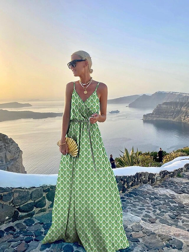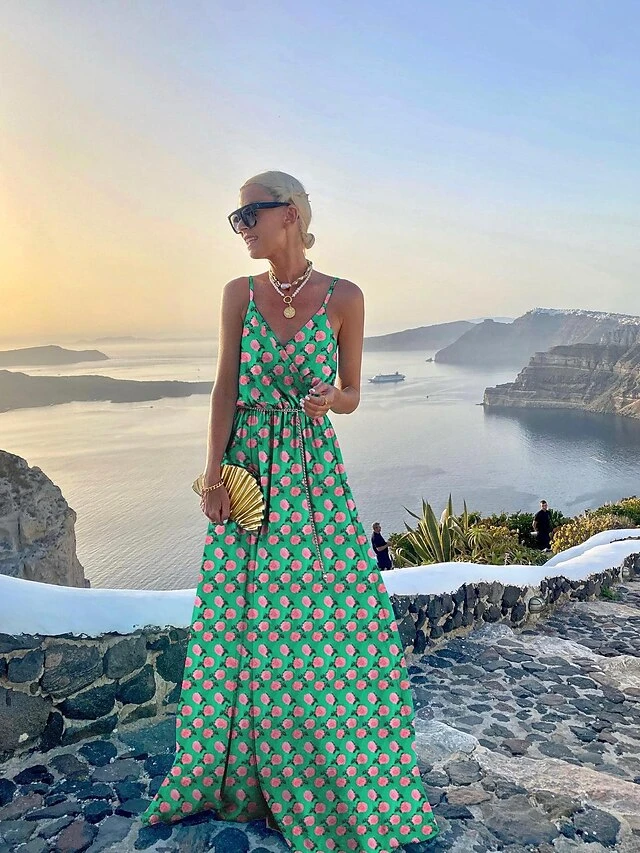 Women’s Swing Dress Maxi Long Dress Red Maple Leaf Green Pink Flower Pine Needle Fish Pattern Turquoise Blue Solid Color Red Dot Diamond Bodo Leopard Print Sleeveless Geometric With Belt Summer